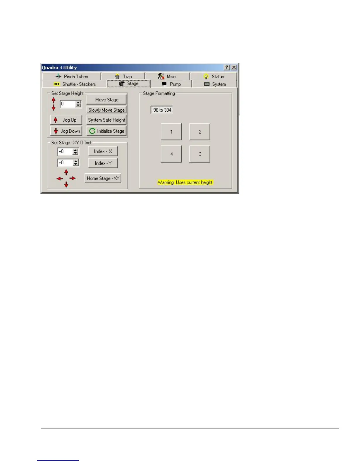 Move Stage will move the stage to the specified height in the adjacent edit box.