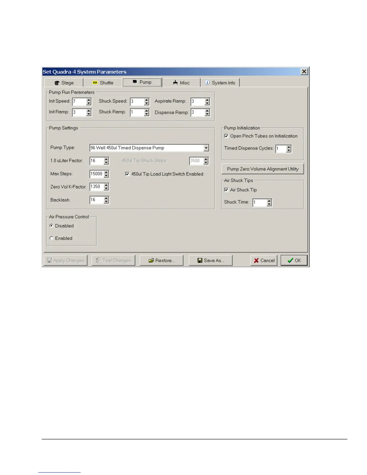 TomTec QUADRA 4 - System Parameters - Pump Settings
