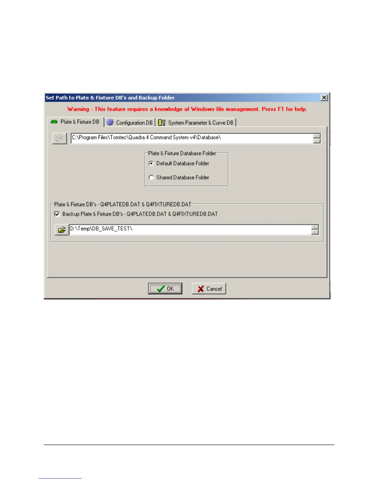 The plate and fixture databases can be shared by multiple Quadra 4's. To do this the