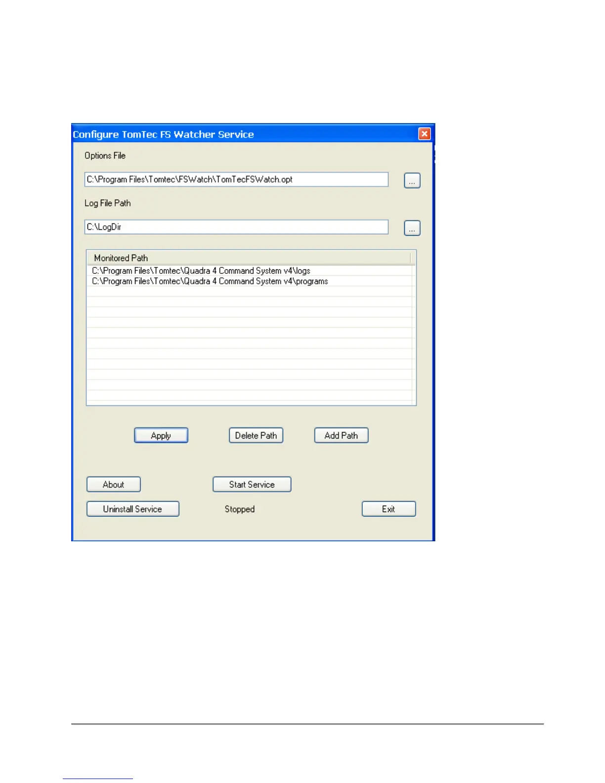 We are monitoring two directories ( C:\Program Files\Tomtec\Quadra 4 Command