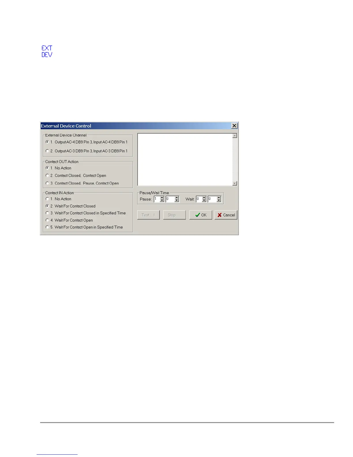 Contact Open, or toggle the contact with a timed pause, Contact Closed, Pause,
