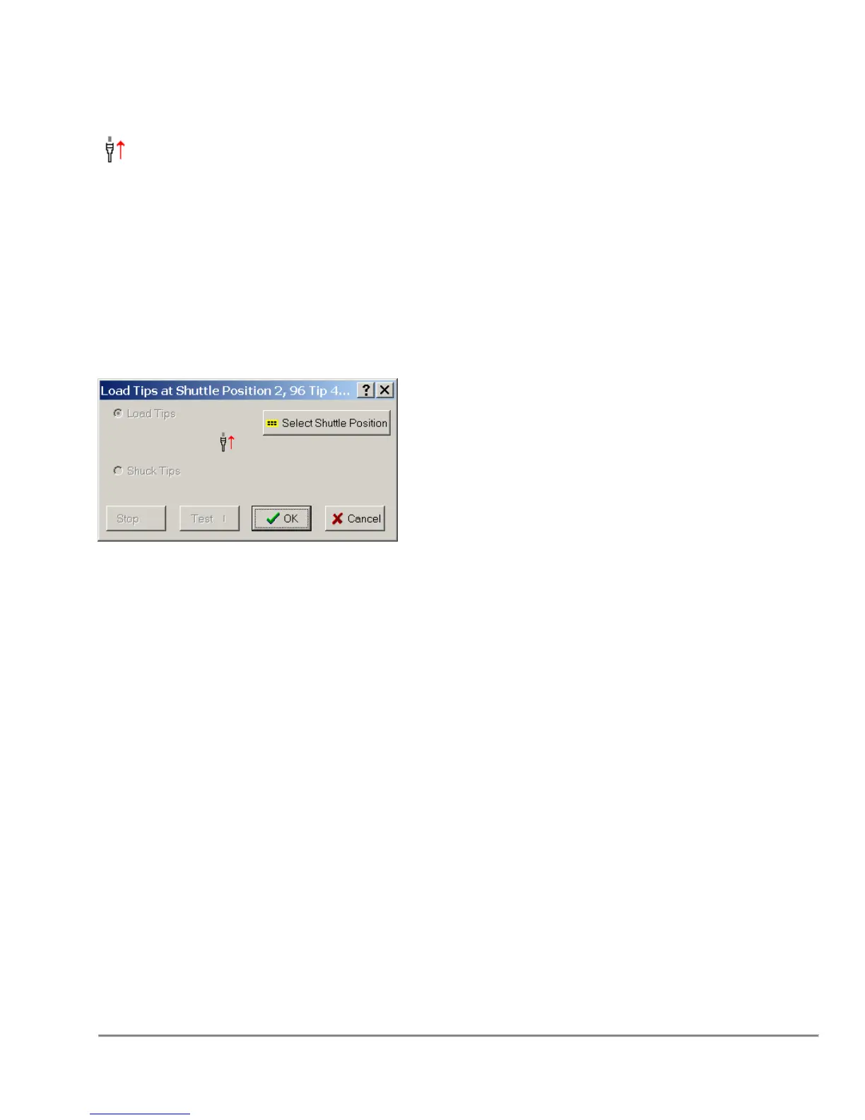 To Load Tips, select a shuttle position that has a tip capable fixture.