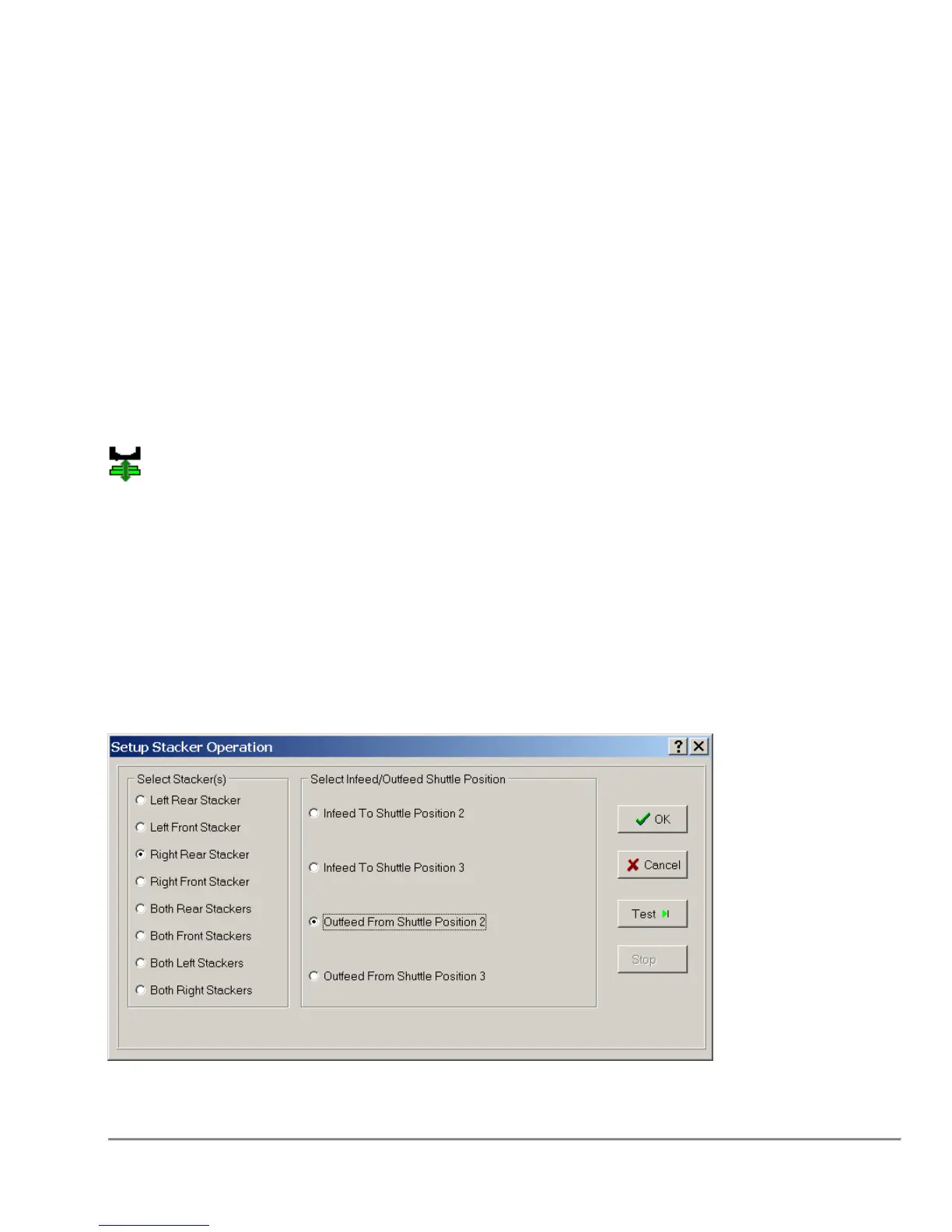 The Stacker Operations Function requires you to select a shuttle position that has a
