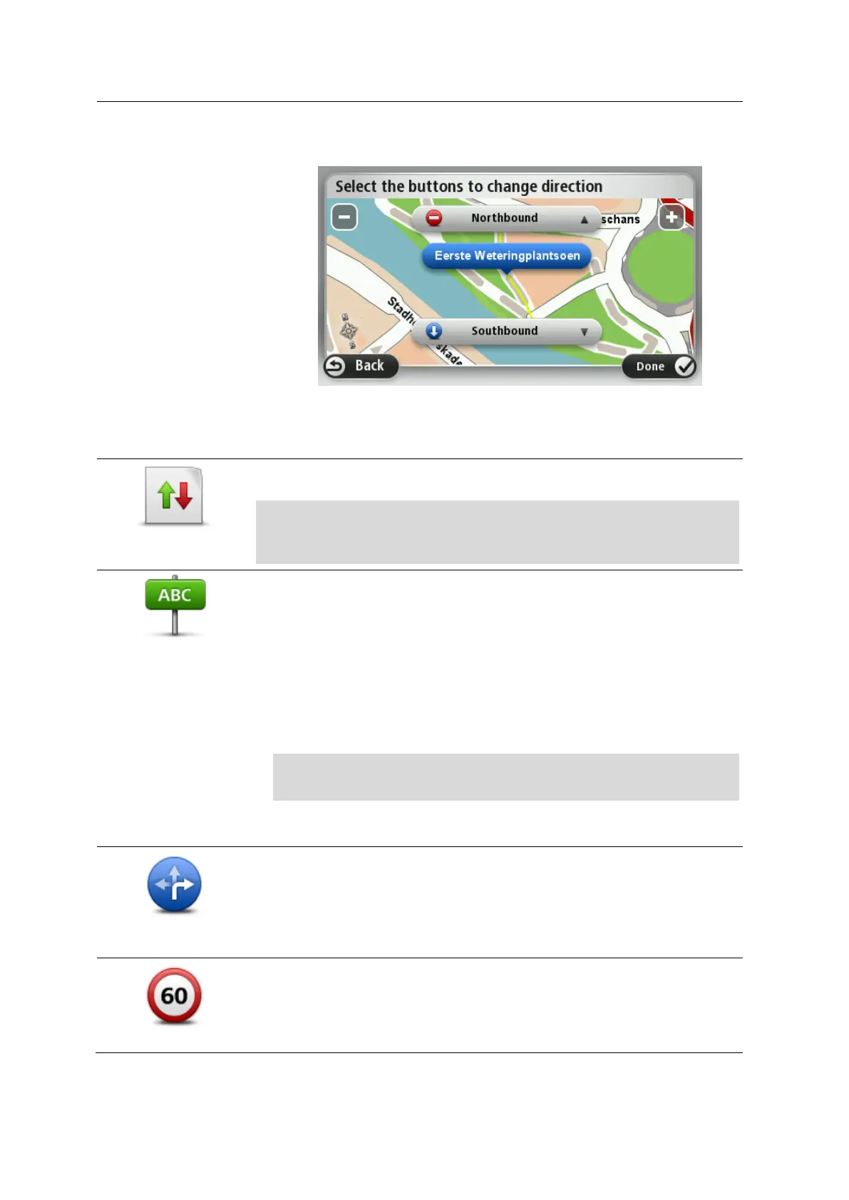 Tap this button to correct the traffic direction of a one-way street, where
