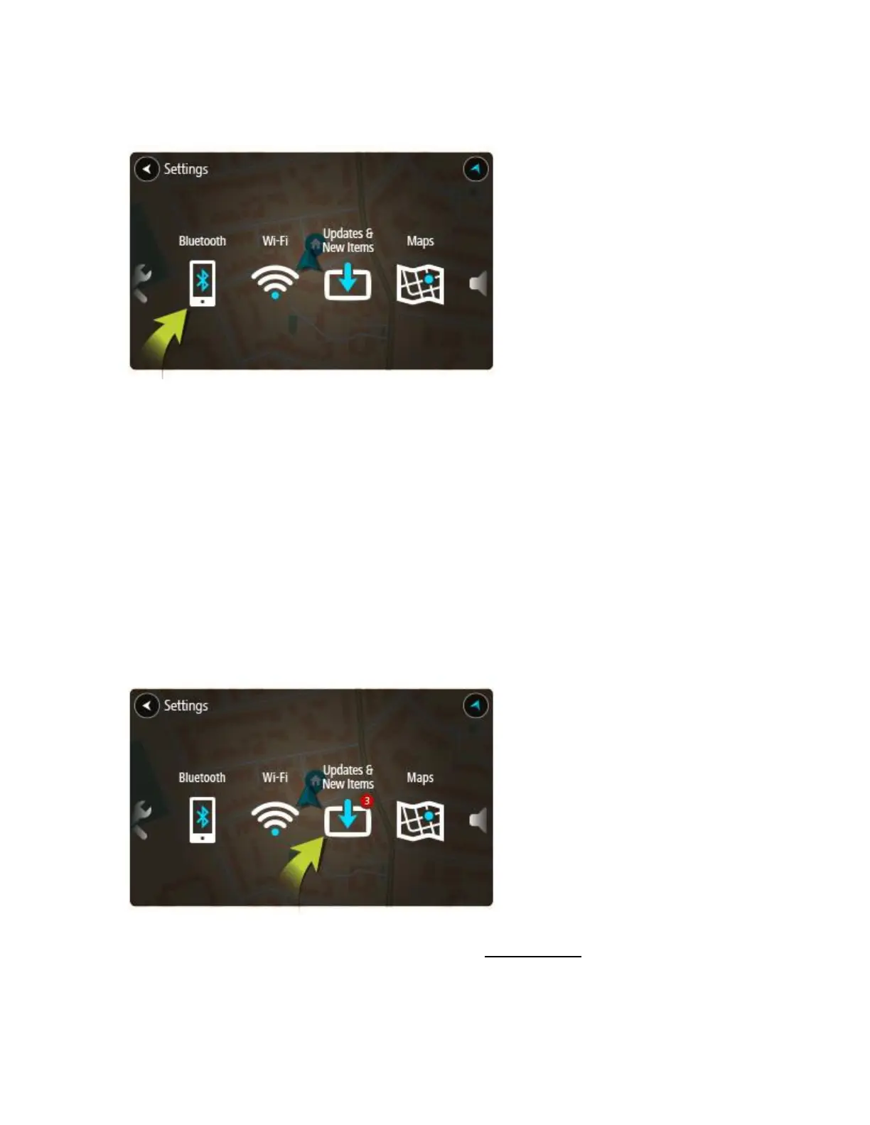 To set up the connection to your phone, open the main menu. Tap Settings, then tap Bluetooth.