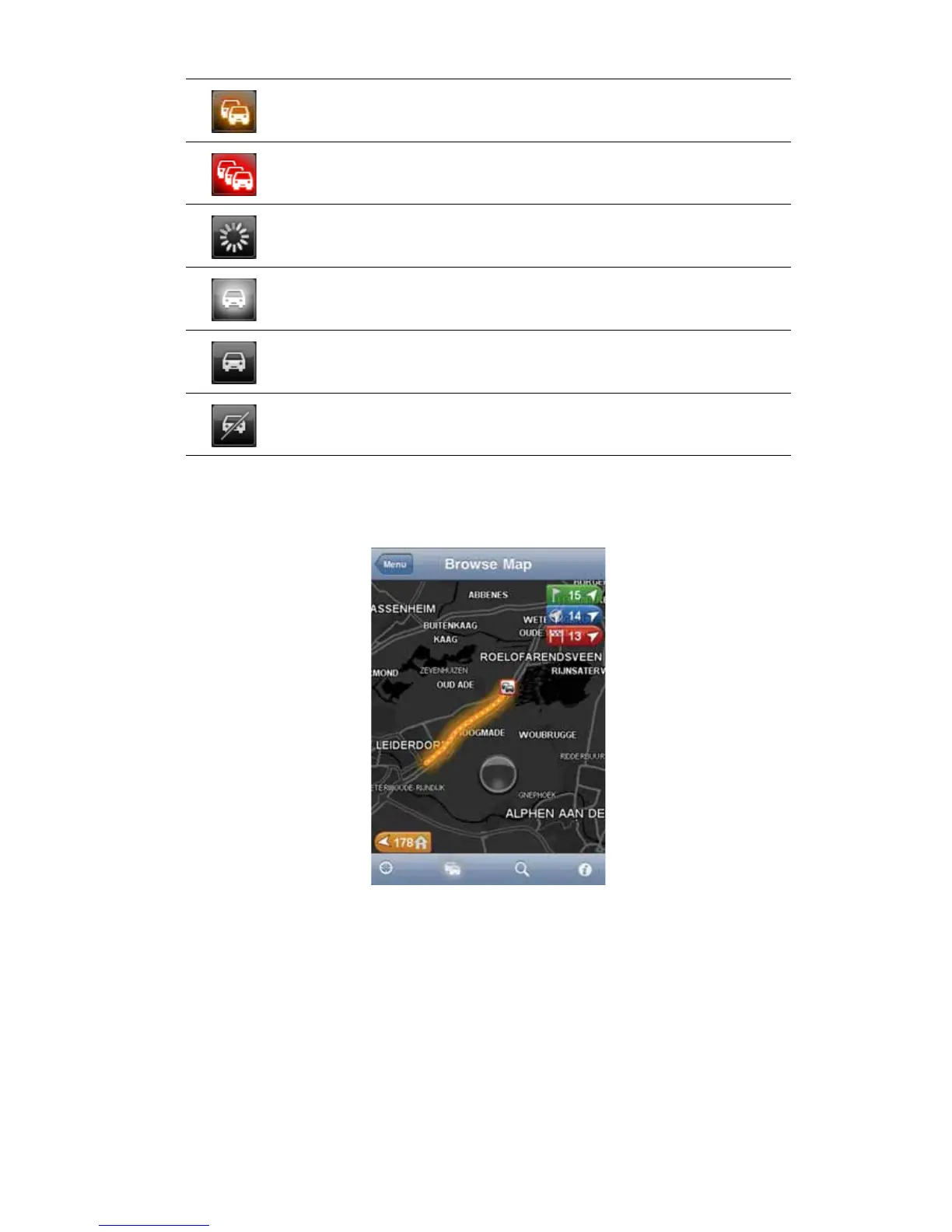 When a traffic incident is shown on the map, the starting point of the incident is indicated