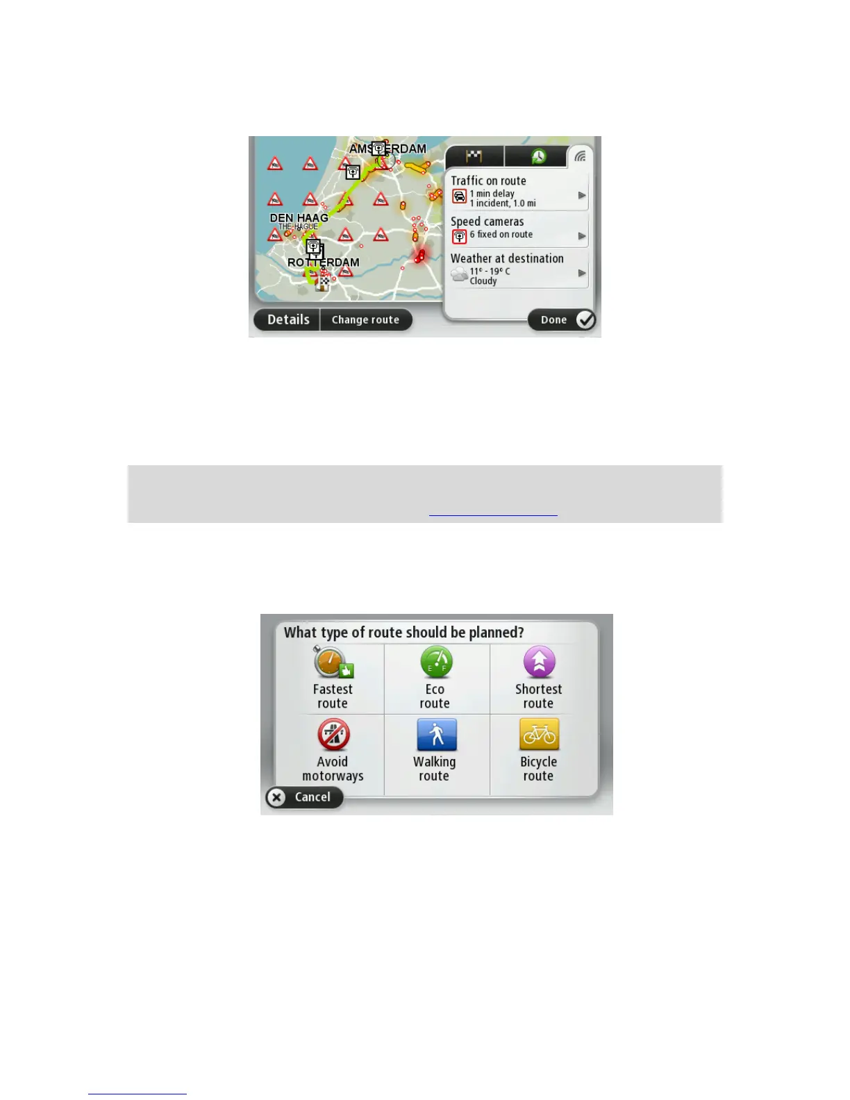 Traffic on route - tap this panel to view detailed information about traffic delays and other