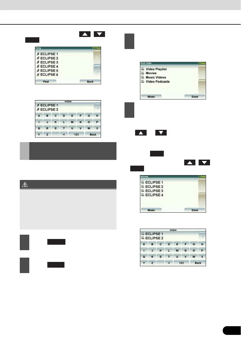 ● The iPod video selection screen appears.