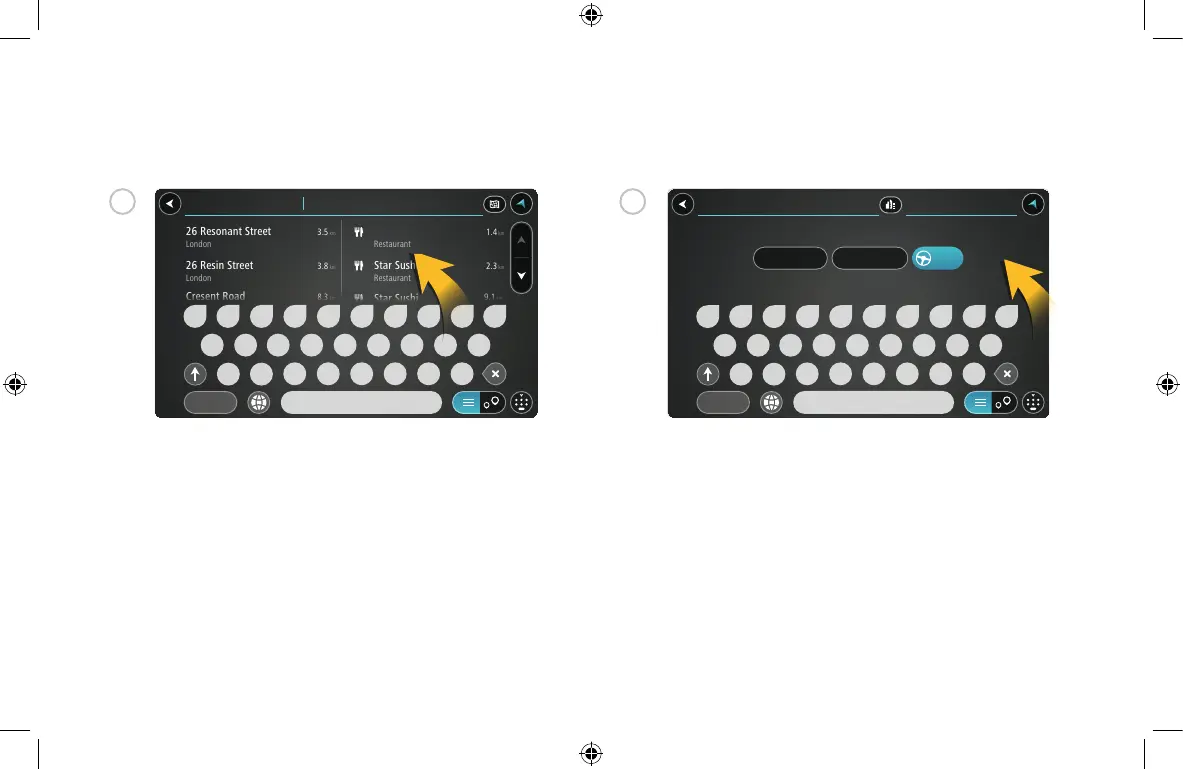 plaatsen aan de rechterkant. Tik op een zoekresultaat om het te selecteren.