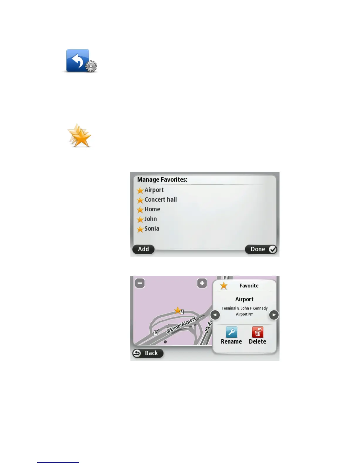 Tap this button to add, rename or delete Favorites.