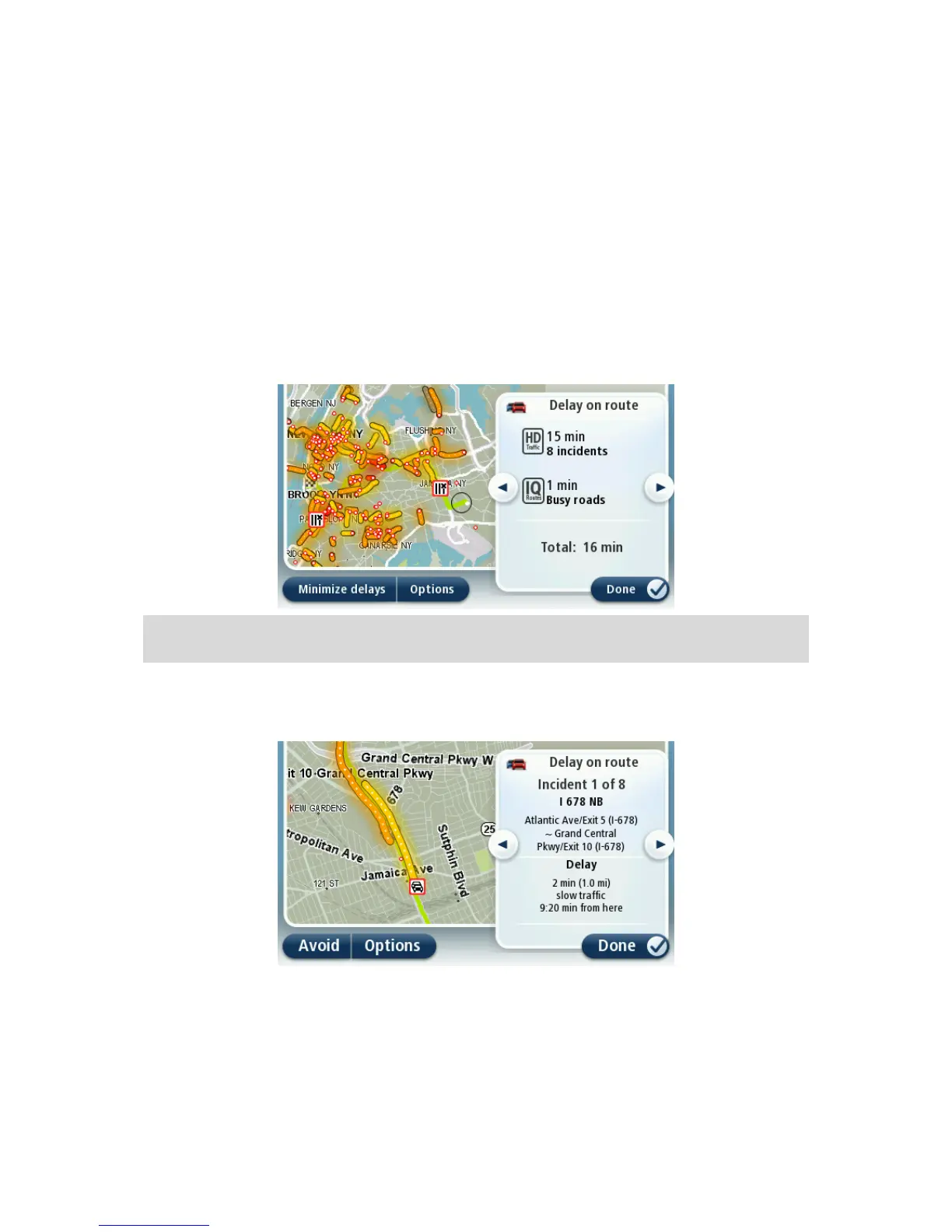 Tap Minimize delays to check if you can reduce the delay. Tap Options to open the Traffic menu.