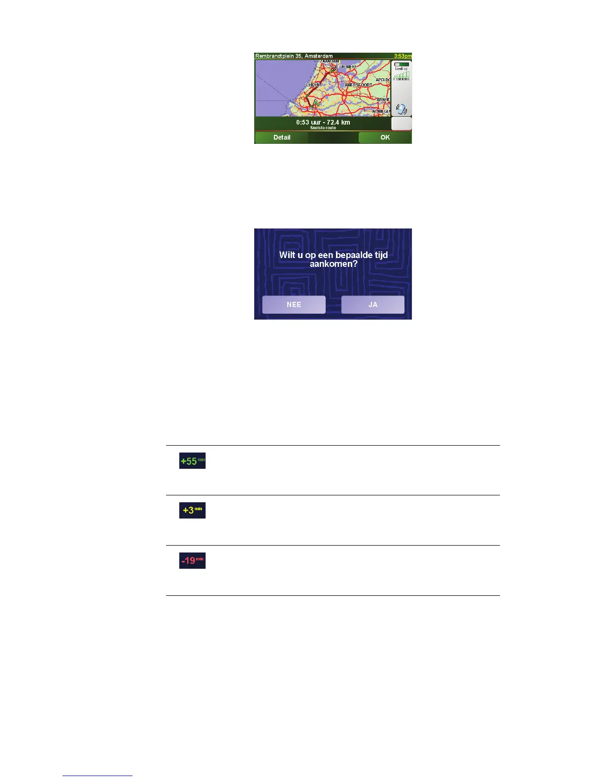 vertrekken. Als de ONE XL aangeeft dat u 30 minuten te vroeg zult aankomen,