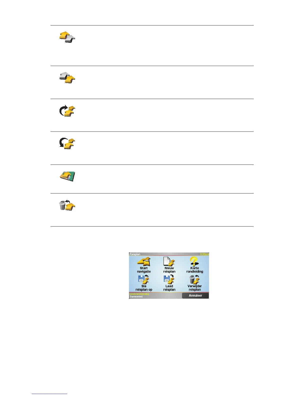 Indien het item bovenaan in het Reisplan staat, is deze knop niet