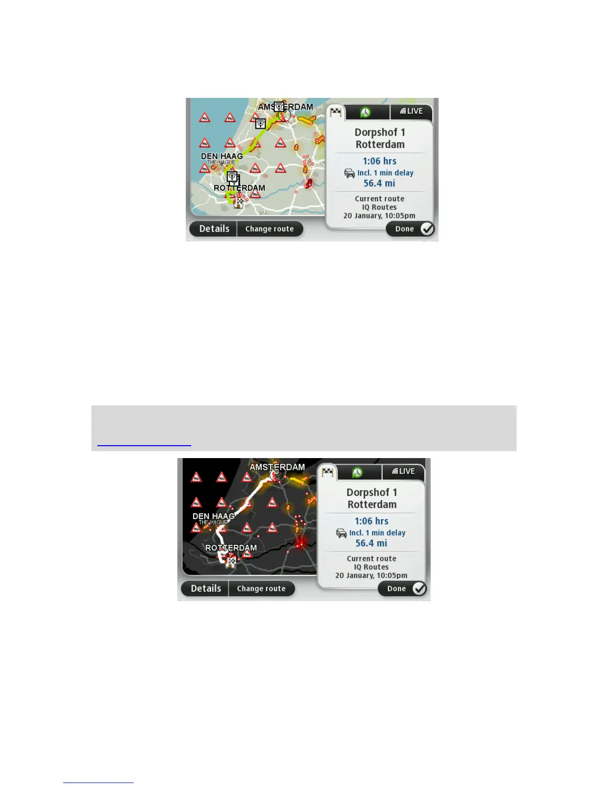 LIVE summary shows LIVE Services information on your route.