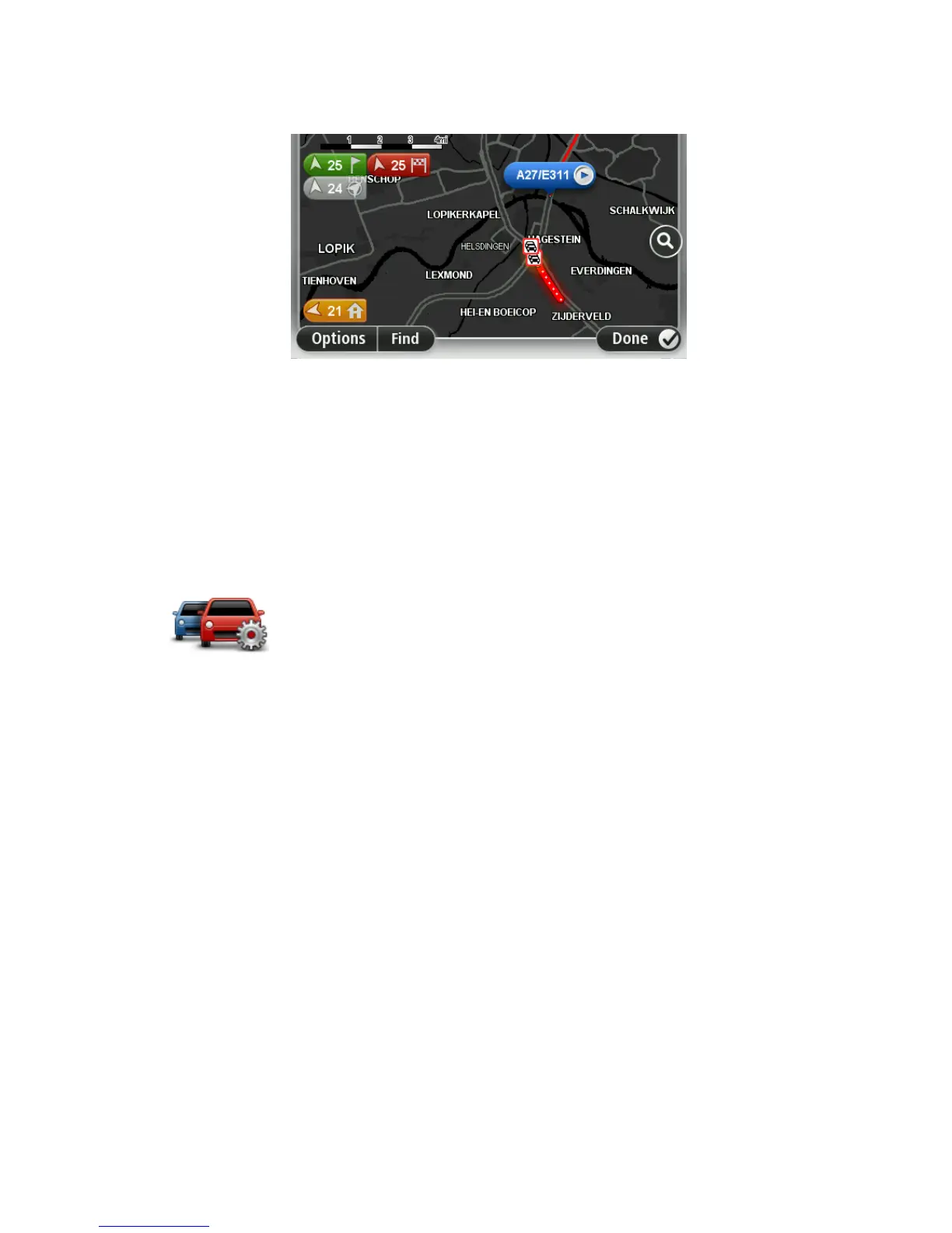 Symbols shown in a red square are traffic incidents. Your navigation device can replan to