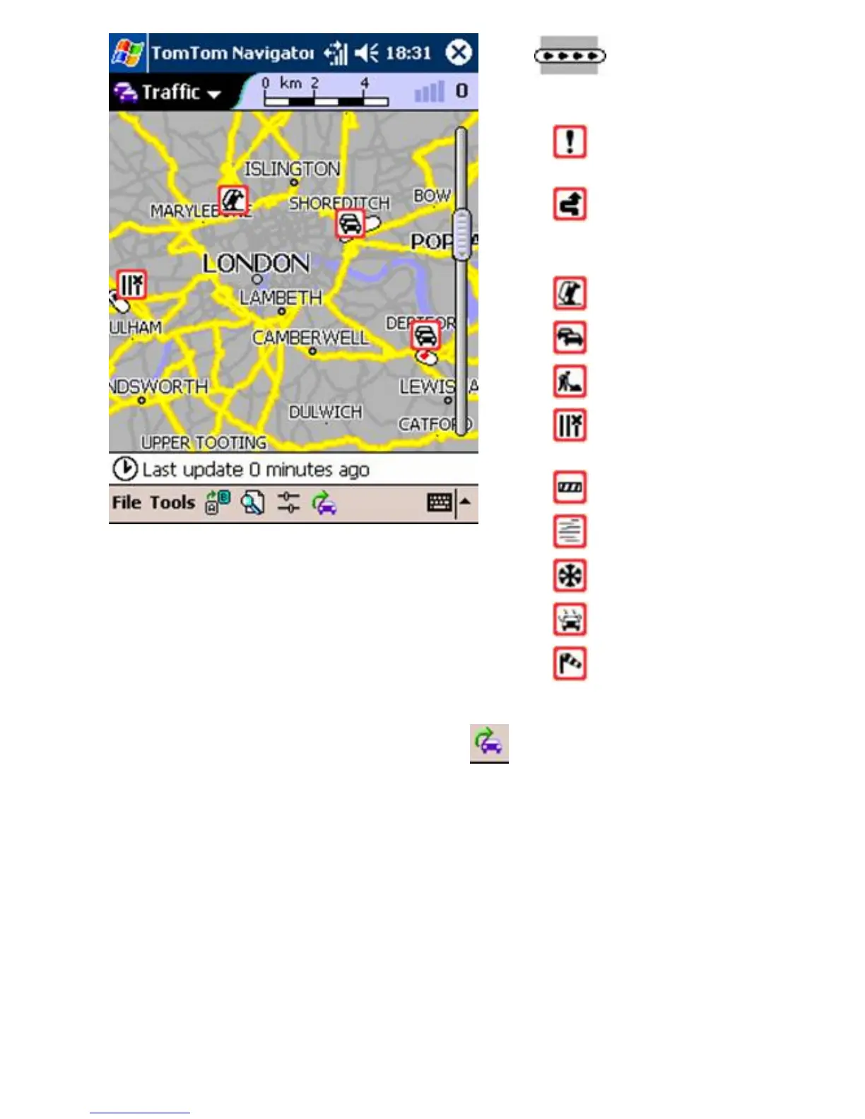 of the jam can indicate the cause of the jam. Road works are displayed as dotted