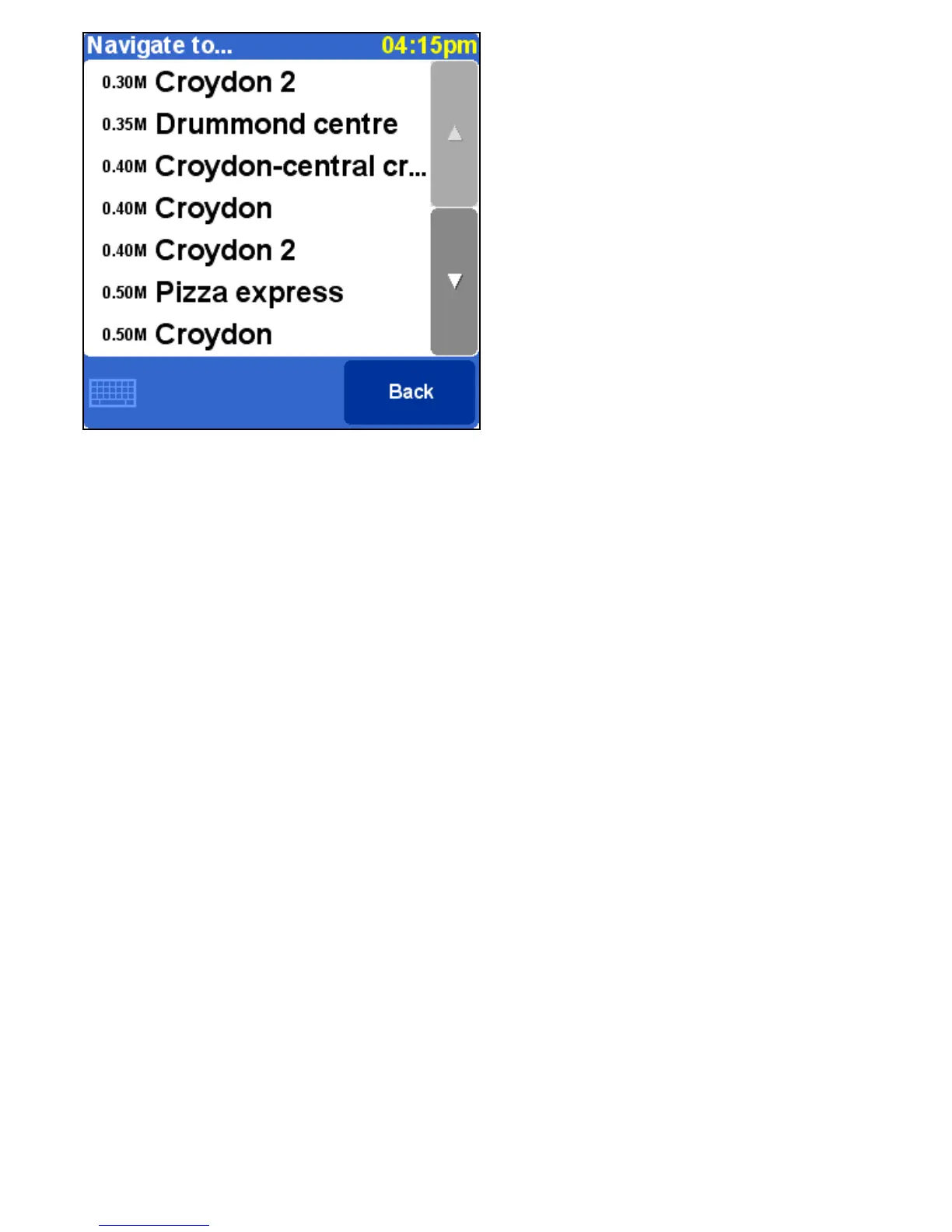 TomTom Navigator will initially present you with a list of recently used city names. In other words, after you have used