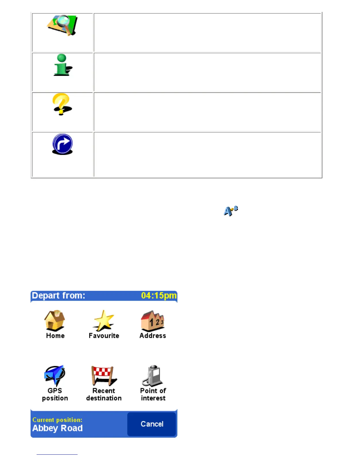 Shows the calculated route as written instructions. Chapter 3.3 describes this function in detail.