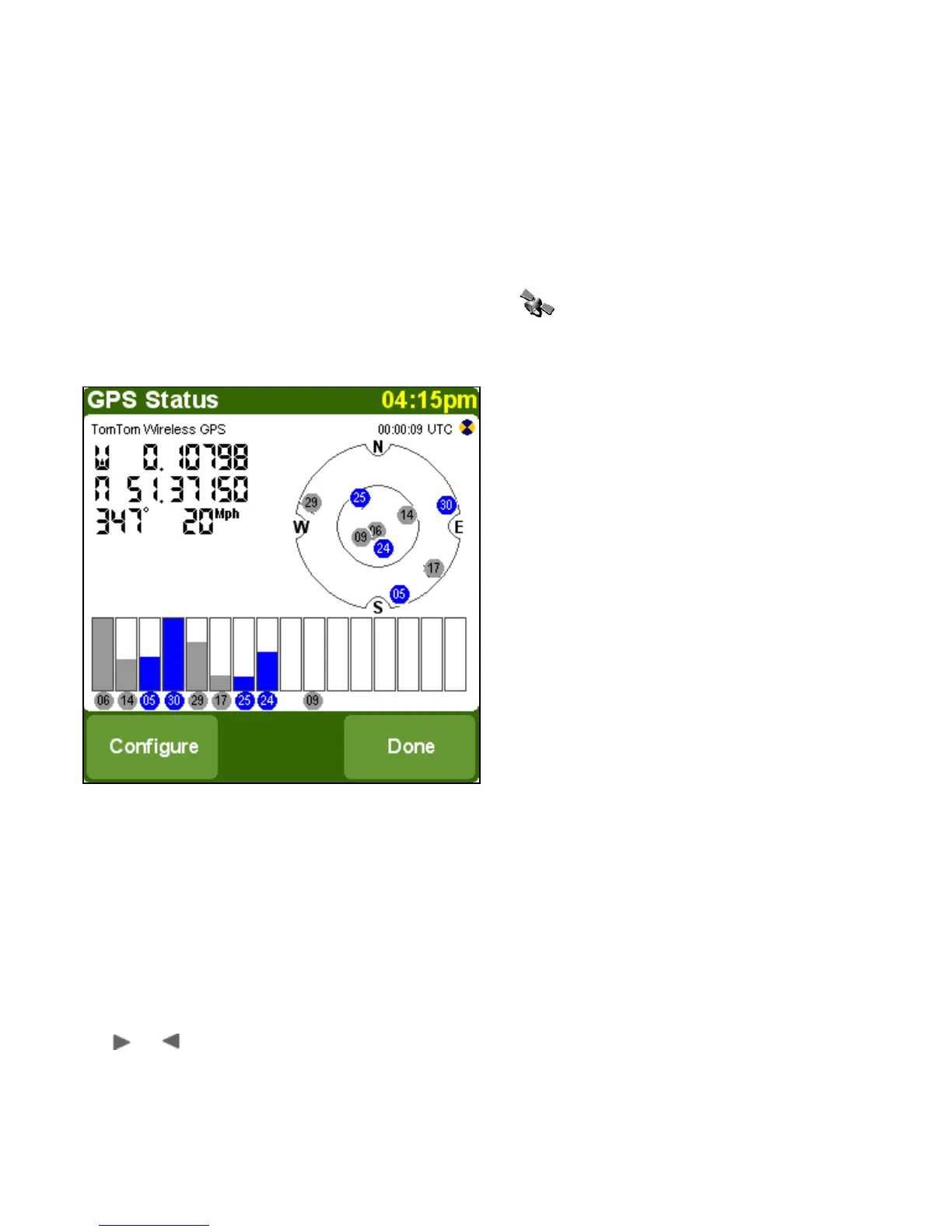 The GPS status screen shows detailed information on the GPS signal you receive: