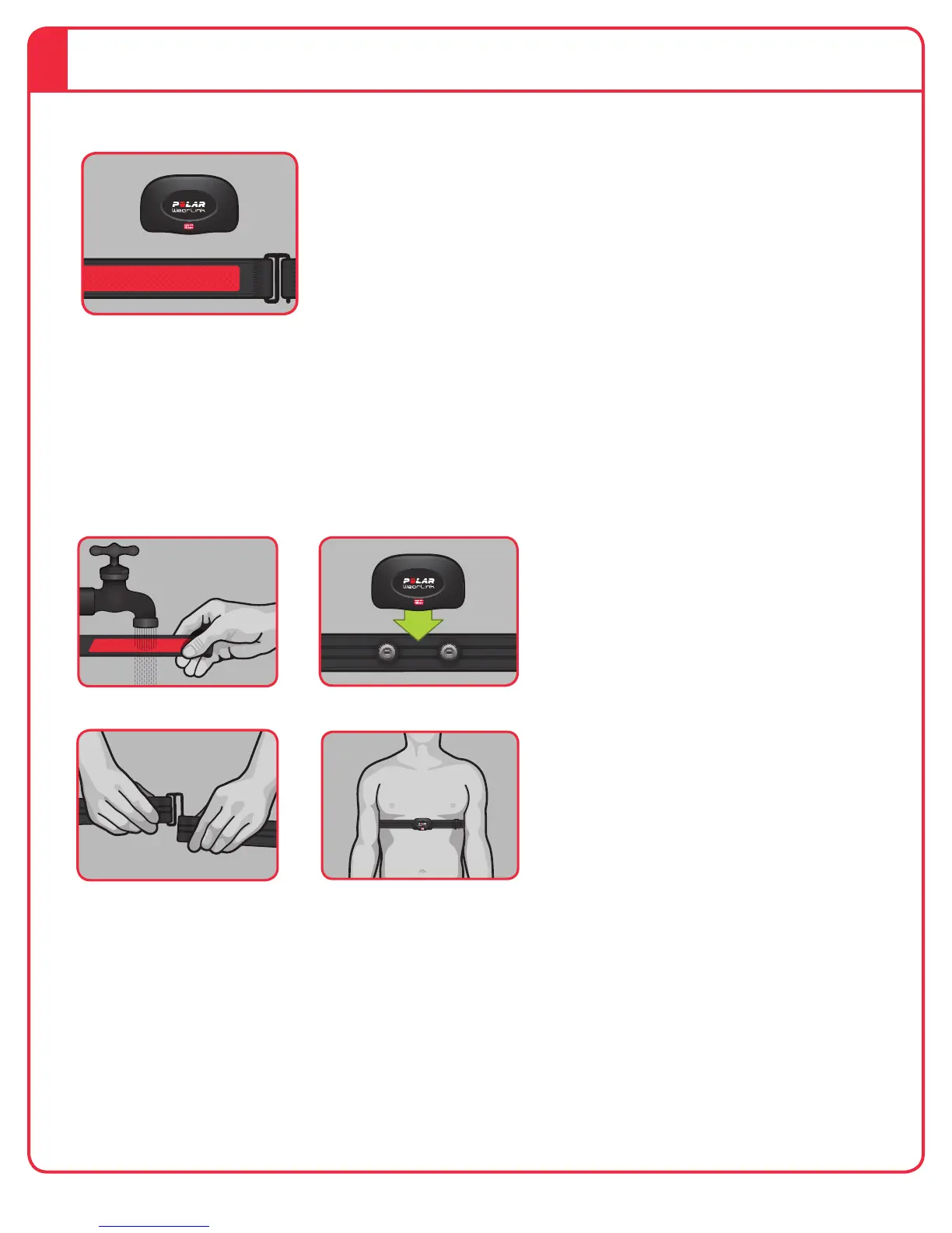 2. Attach the transmitter to the strap, adjusting the length as needed to fit snugly and