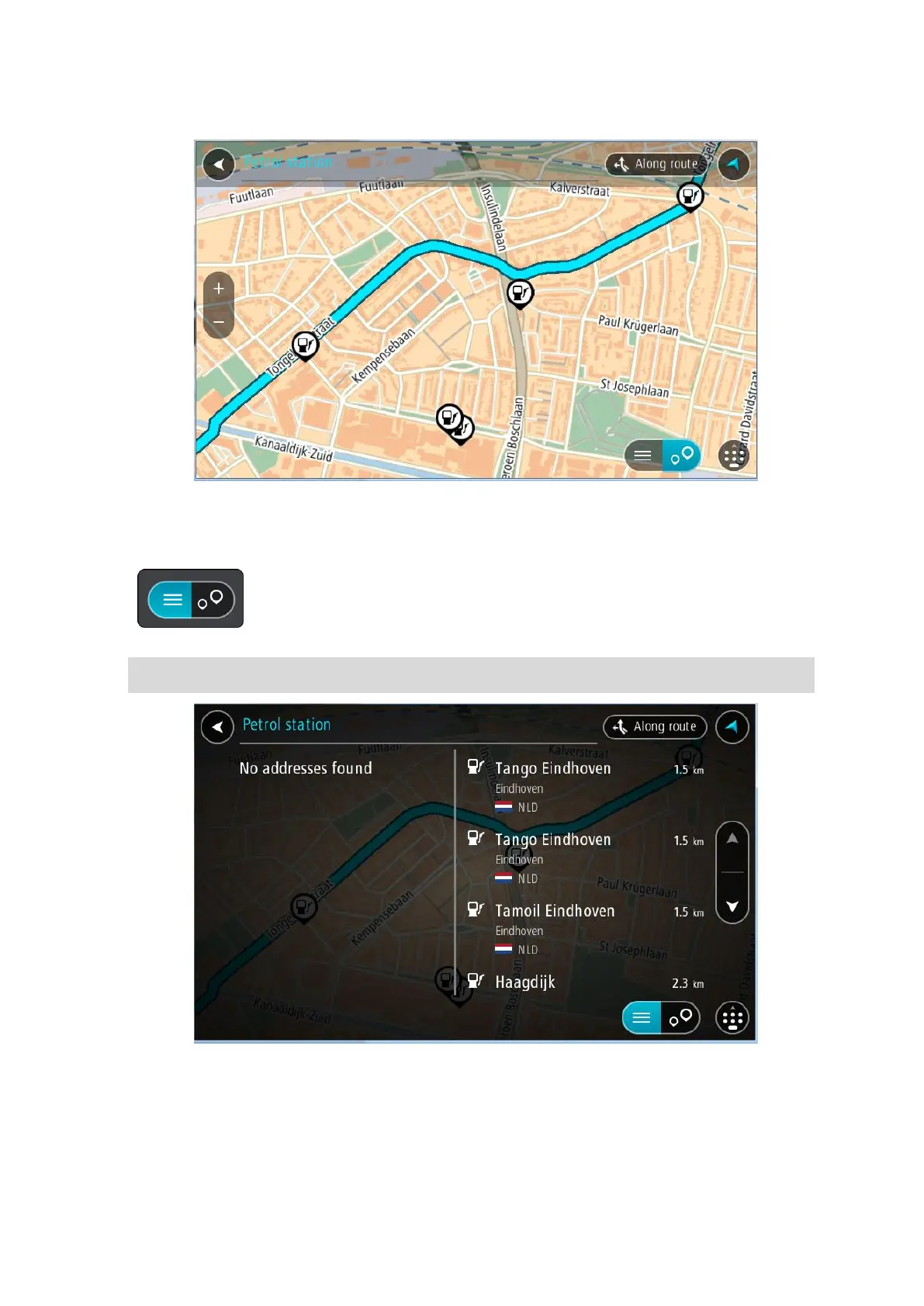 If a route is planned, the map shows gas stations along your route. If a route isn't planned, the