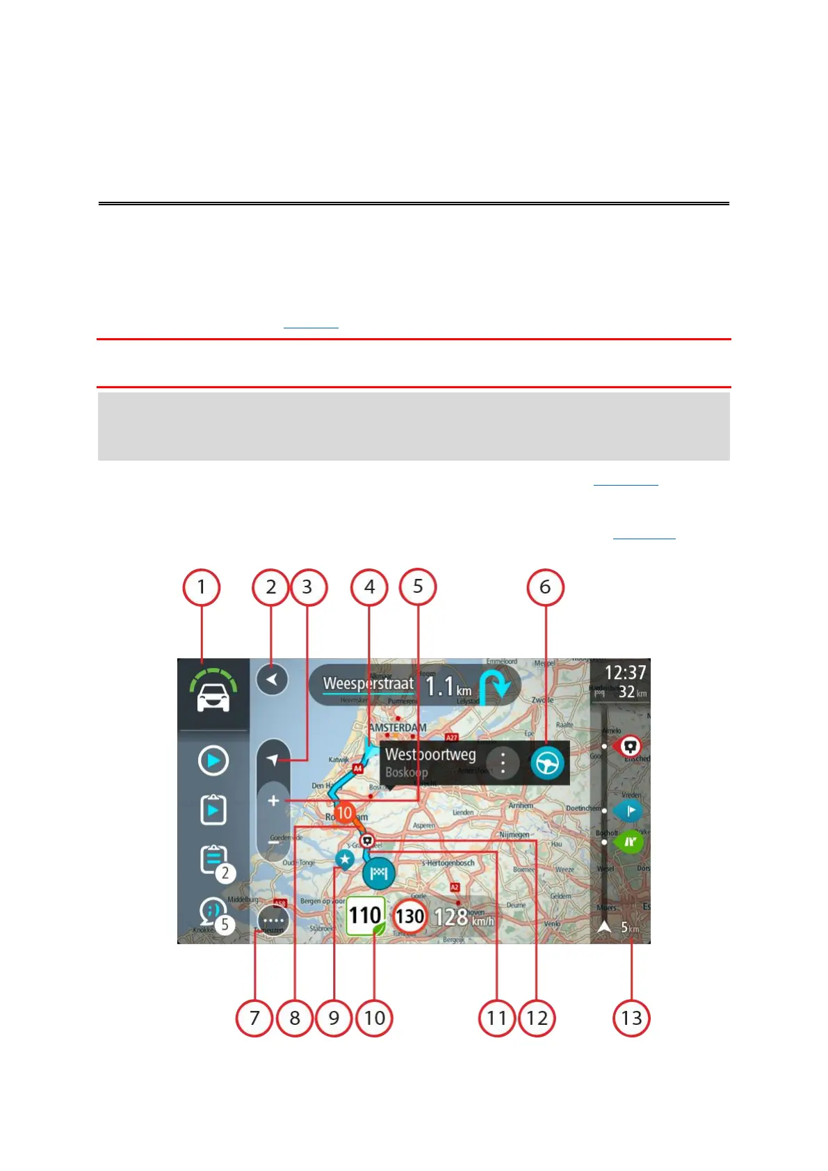 The map view is shown when you have no planned route. Your actual location is shown as soon