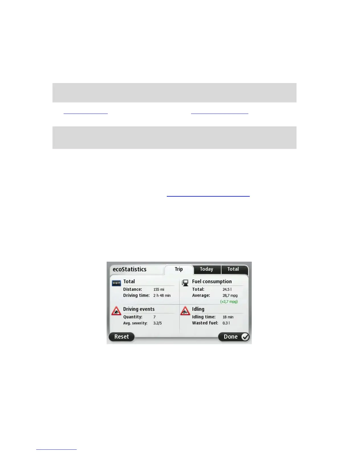 The ecoStatistics view shows you the following details per trip, per day or in total: