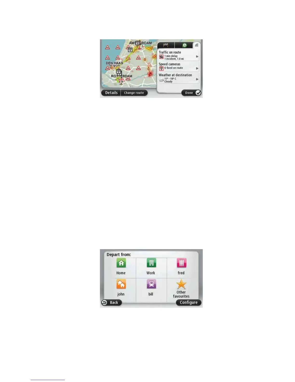 • 7UDIILFRQURXWH - tap this panel to view detailed information about traffic delays and