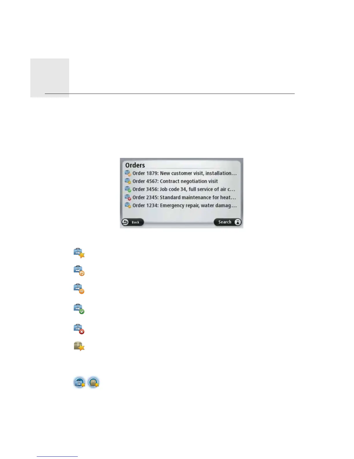 The office can send service orders, delivery orders and pick up orders. They are stored on