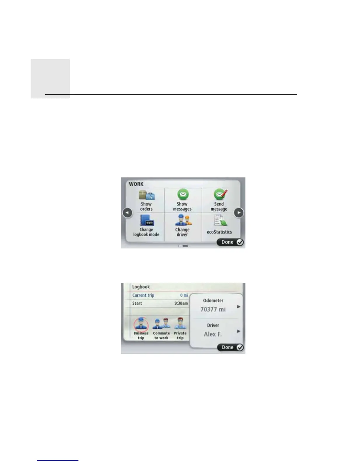You can generate a driver’s logbook with your TomTom PRO. To use this functionality you