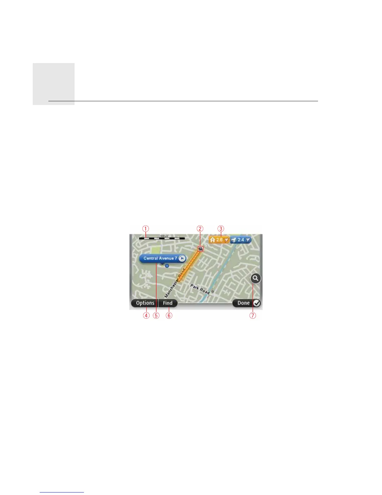 To view the map in this way, tap 9LHZPDS or 9LHZURXWH in the Main menu.