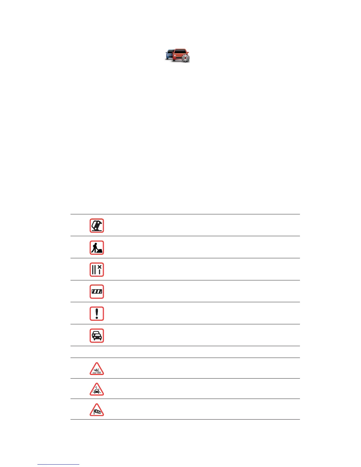 • Symbols shown in a red square are traffic incidents. Your navigation device can replan