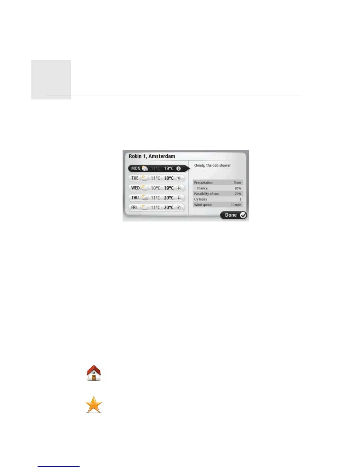 The TomTom Weather service provides detailed weather reports and 5-day weather
