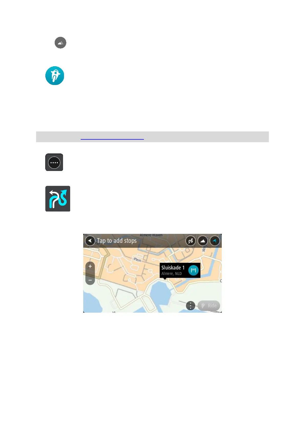 You can plan a route to a destination using the map. The route to your destination will be along the