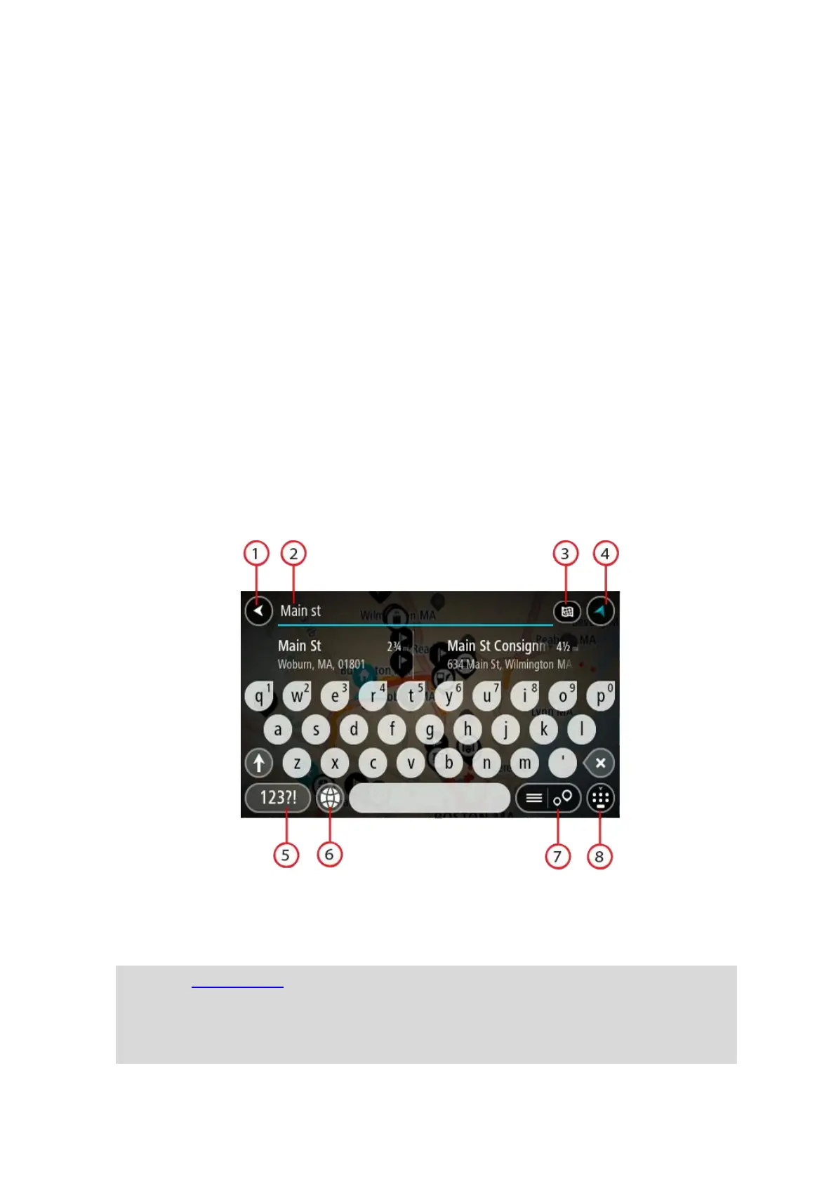 Enter your search term here. As you type, matching addresses and POIs are shown.