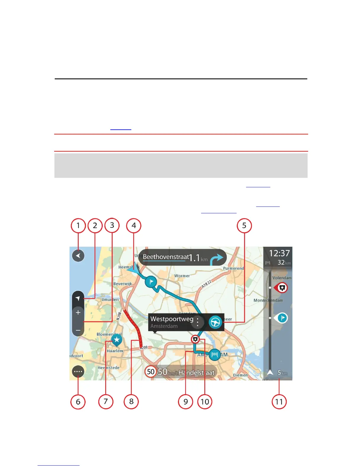 The map view is shown when you have no planned route. Your actual location is shown as soon as