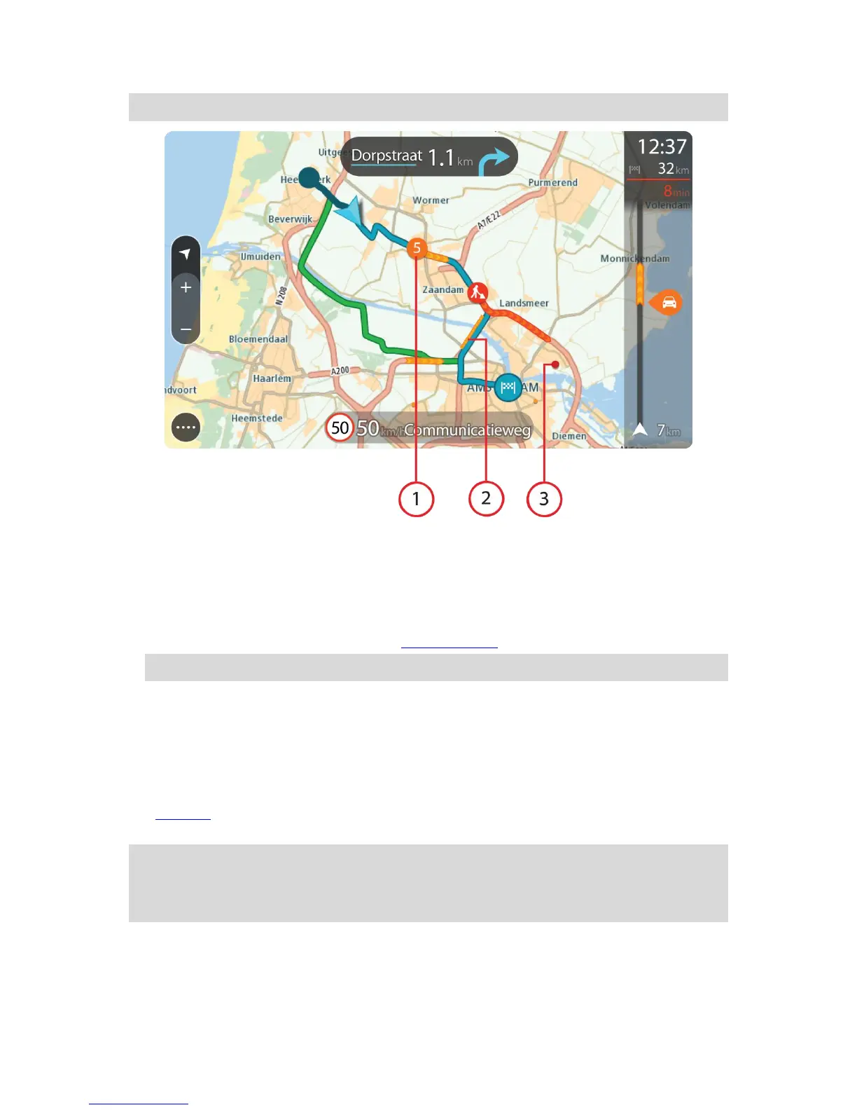 The route bar tells you about traffic delays while you are driving, using symbols to show you where