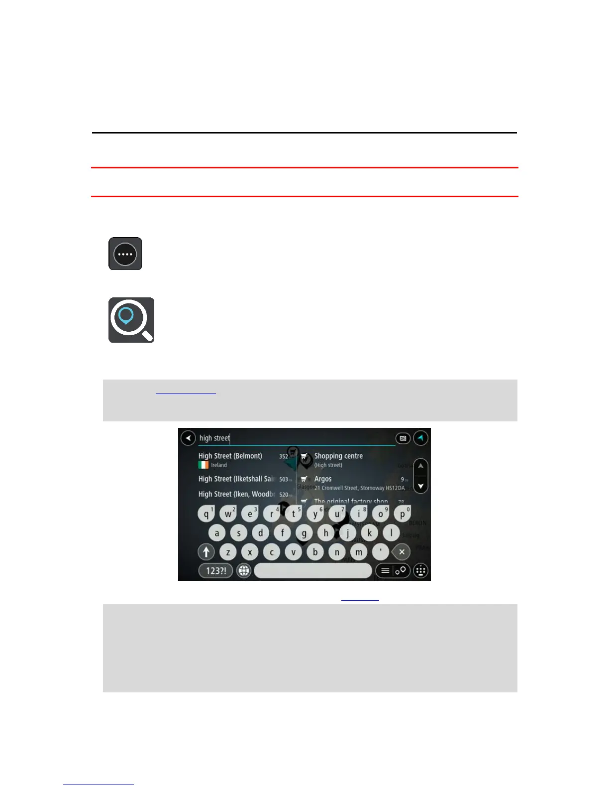 3. Use the keyboard to enter the name of the place you want to plan a route to.