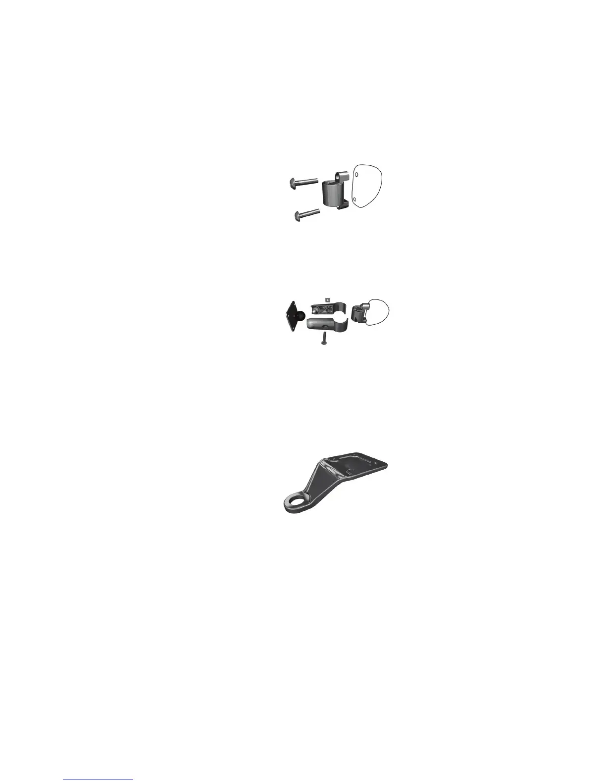 2. Place first the rubber washer, then the Mirror Mount and finally the metal
