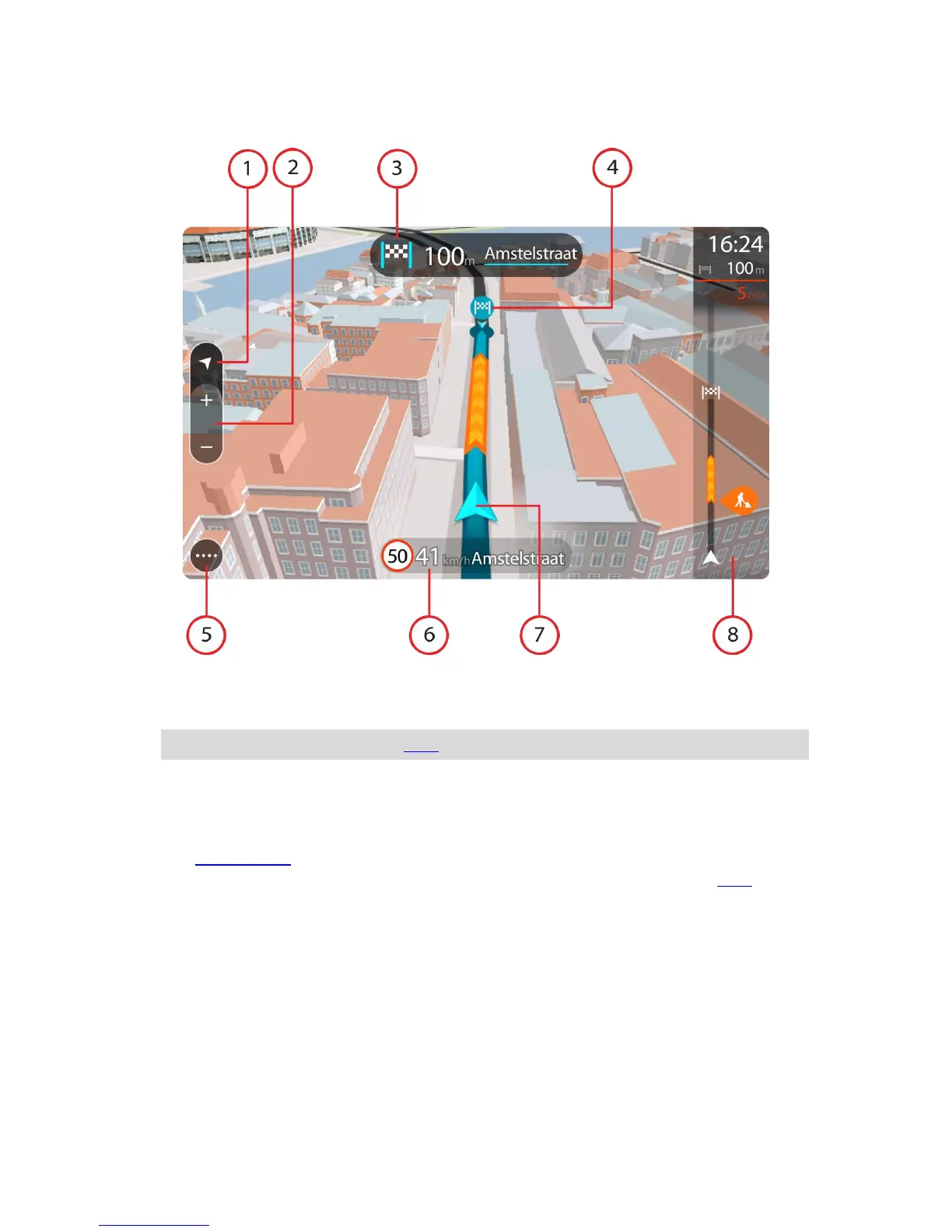7. Current location. This symbol shows your current location. Select the symbol or the speed panel to