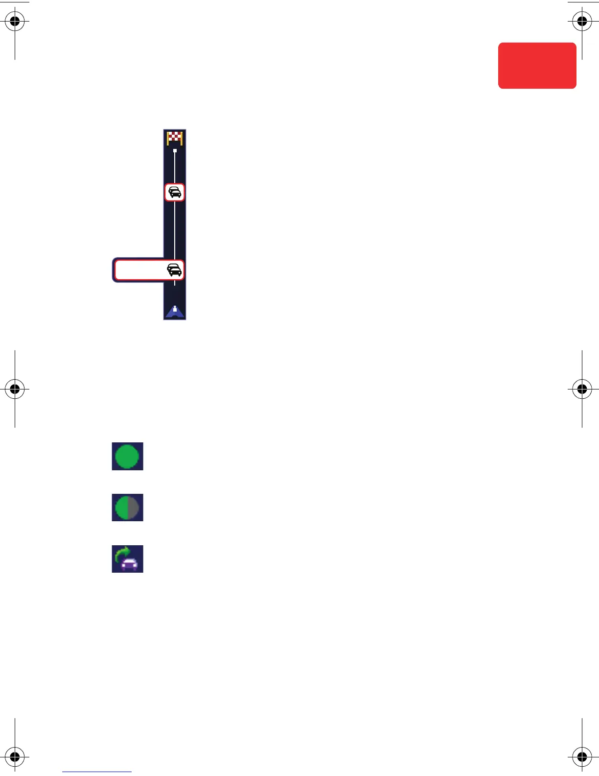 Tijdens het gebruik van RDS-TMC-verkeersinfo kun je aan de groene