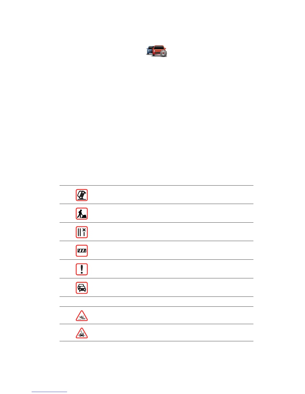 • Symbols shown in a red square are traffic incidents. Your navigation device can replan