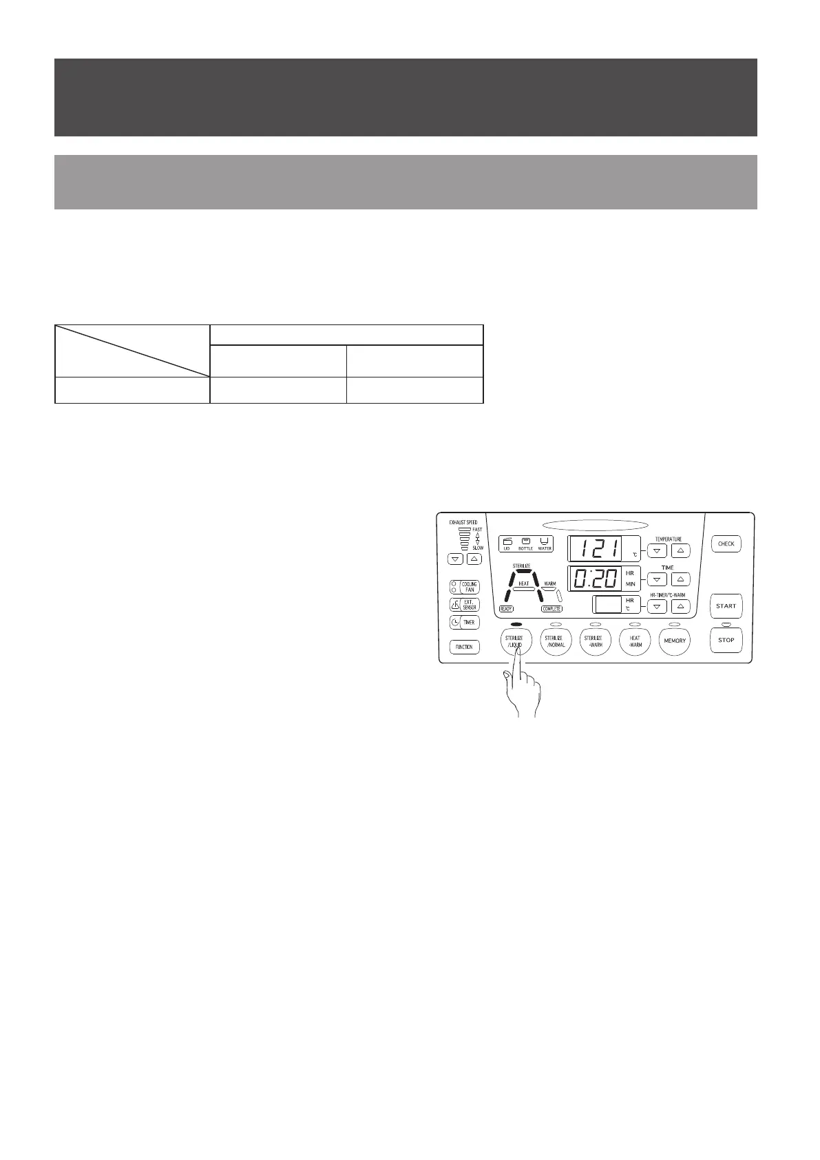 Press the [Time setting] keys to set the time for the sterilizing process.