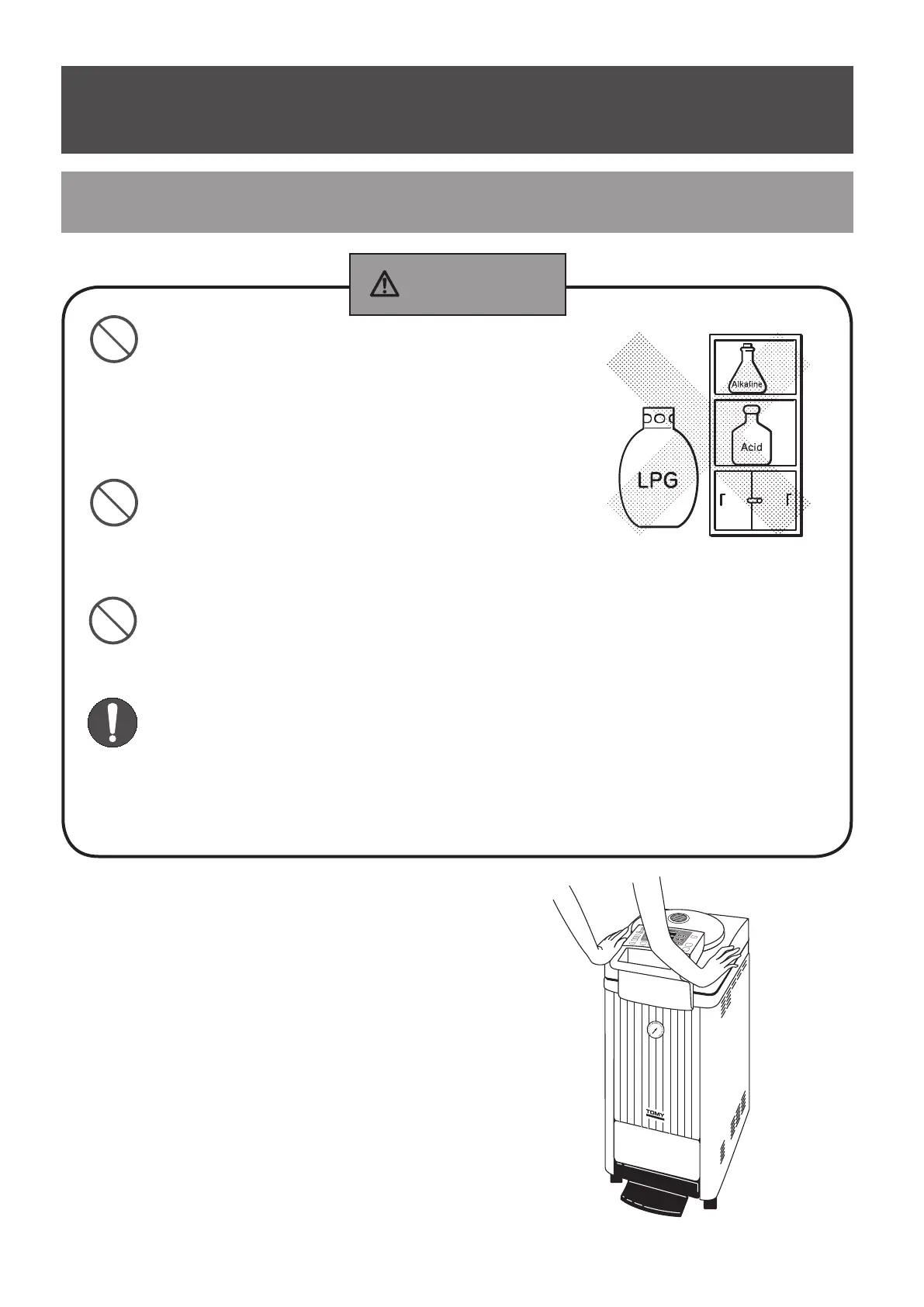 Do not install the autoclave near a sink or water pipe or any place