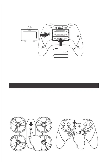 1. Open the battery cover of remote control and install 3 AAA batteries