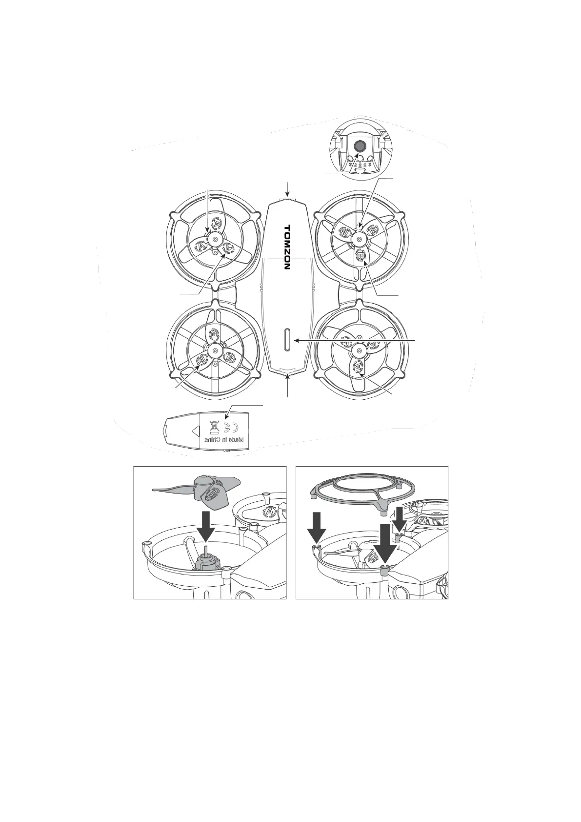 Tipp: Die Drohne hat zwei Propellertypen ("A" und "B"), gekennzeichnet mit A und B.