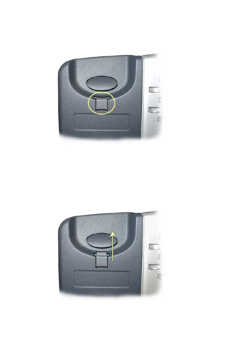 bumped from the cradle. Pull out the clip as shown, rotate the clip 180°,