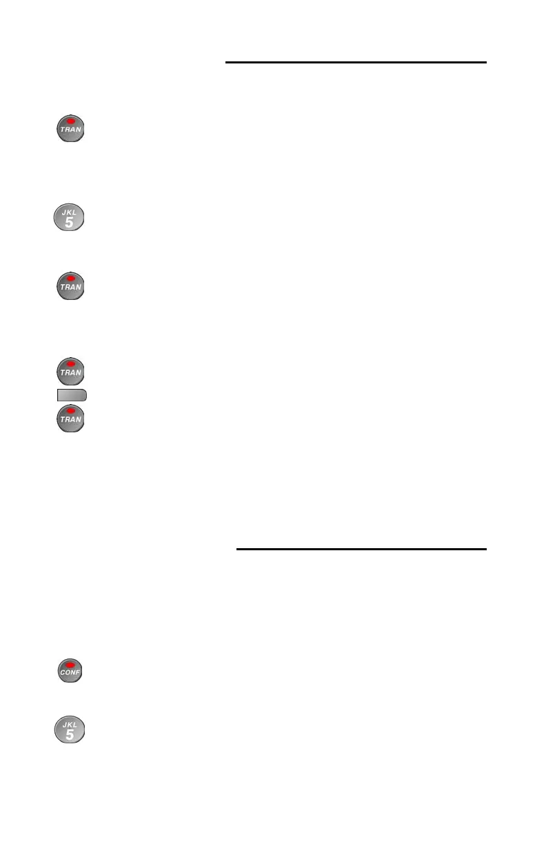 While on an active call, press the TRAN key.