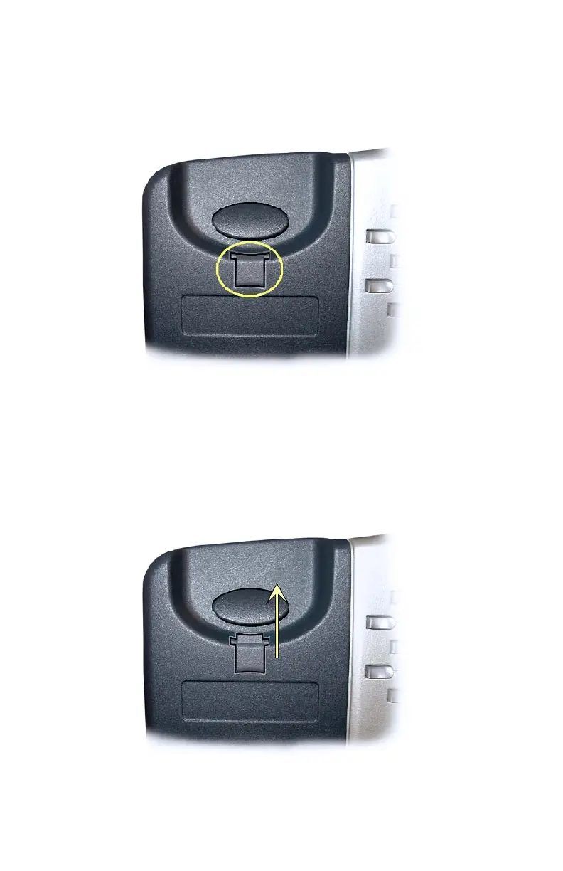 bumped from the cradle. Pull out the clip as shown, rotate the clip 180°,