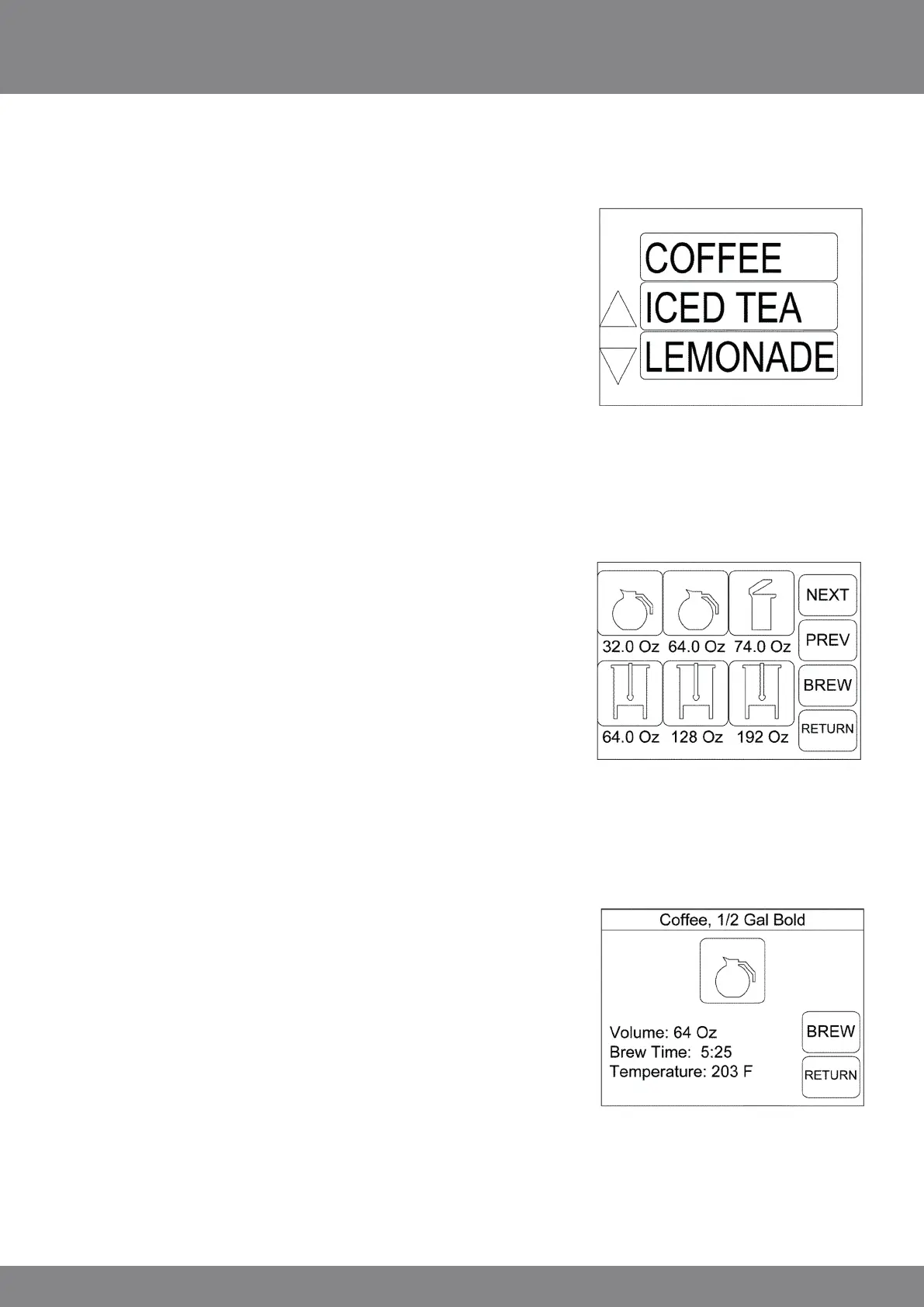 descriptive icons will be displayed with the volume of the brew